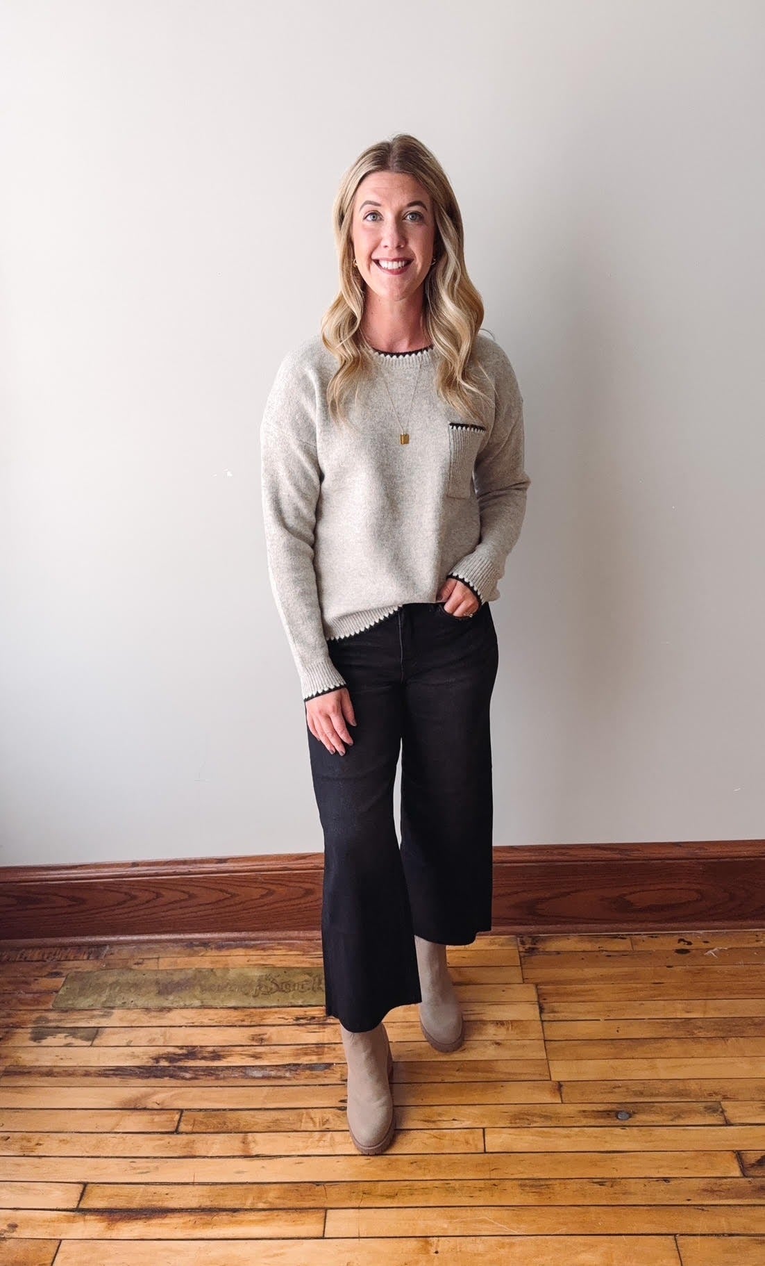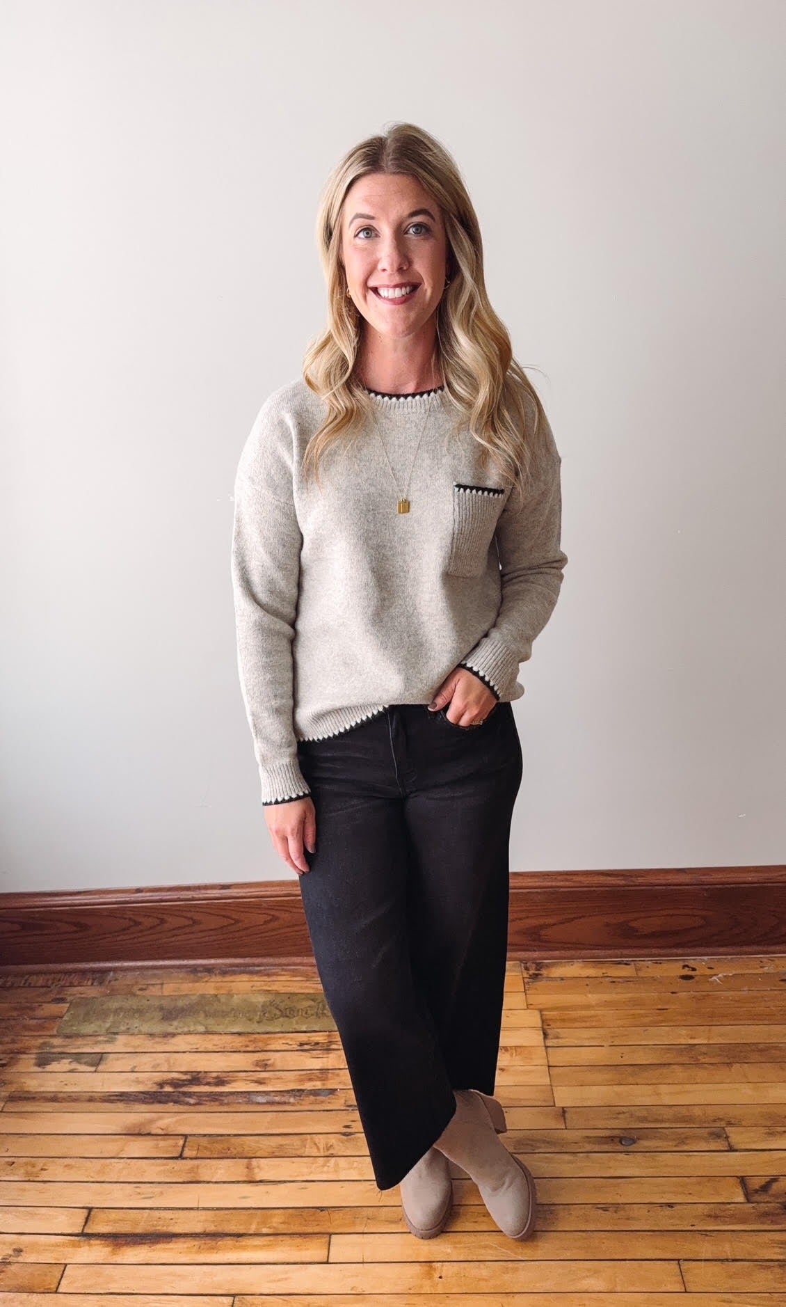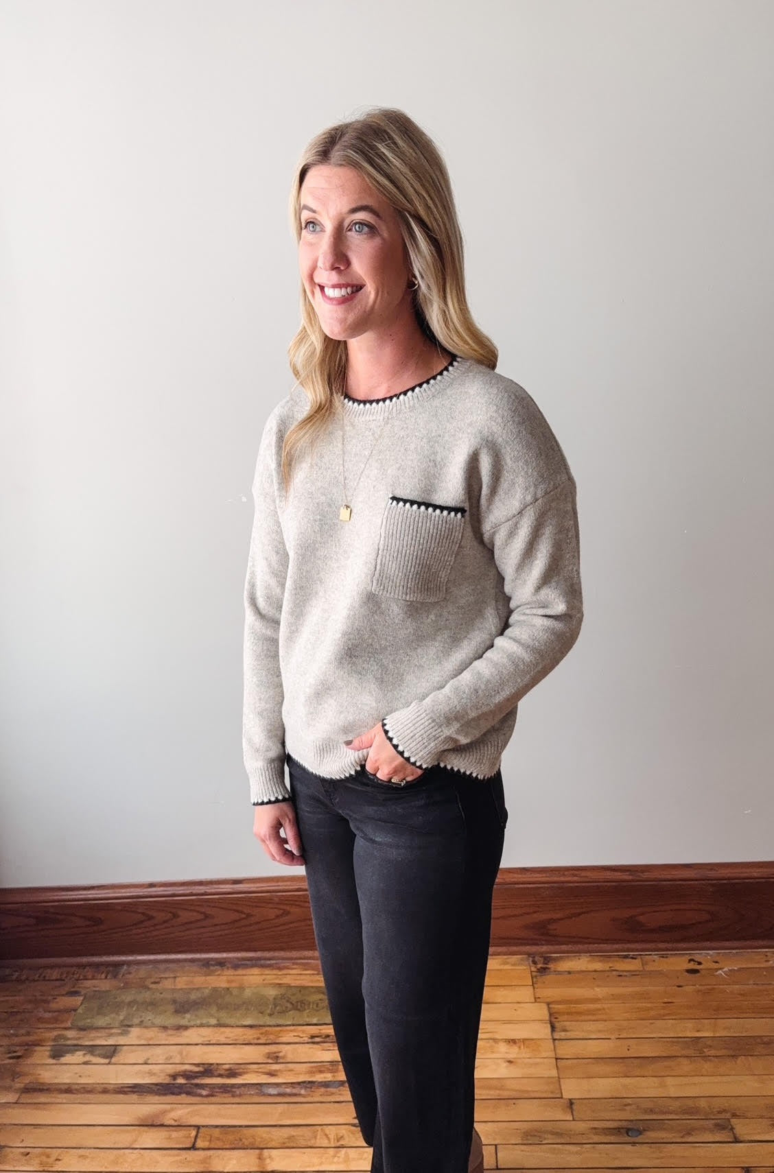 Stay cozy and stylish with the Ada pullover sweater! Featuring a playful color-trimmed, blanket-stitched edge and a handy chest pocket, this long-sleeve sweater effortlessly blends comfort with cool details. Perfect for layering or rocking solo on breezy days, Ada keeps your look fresh and fun.