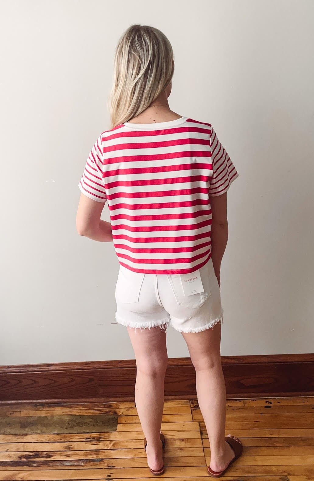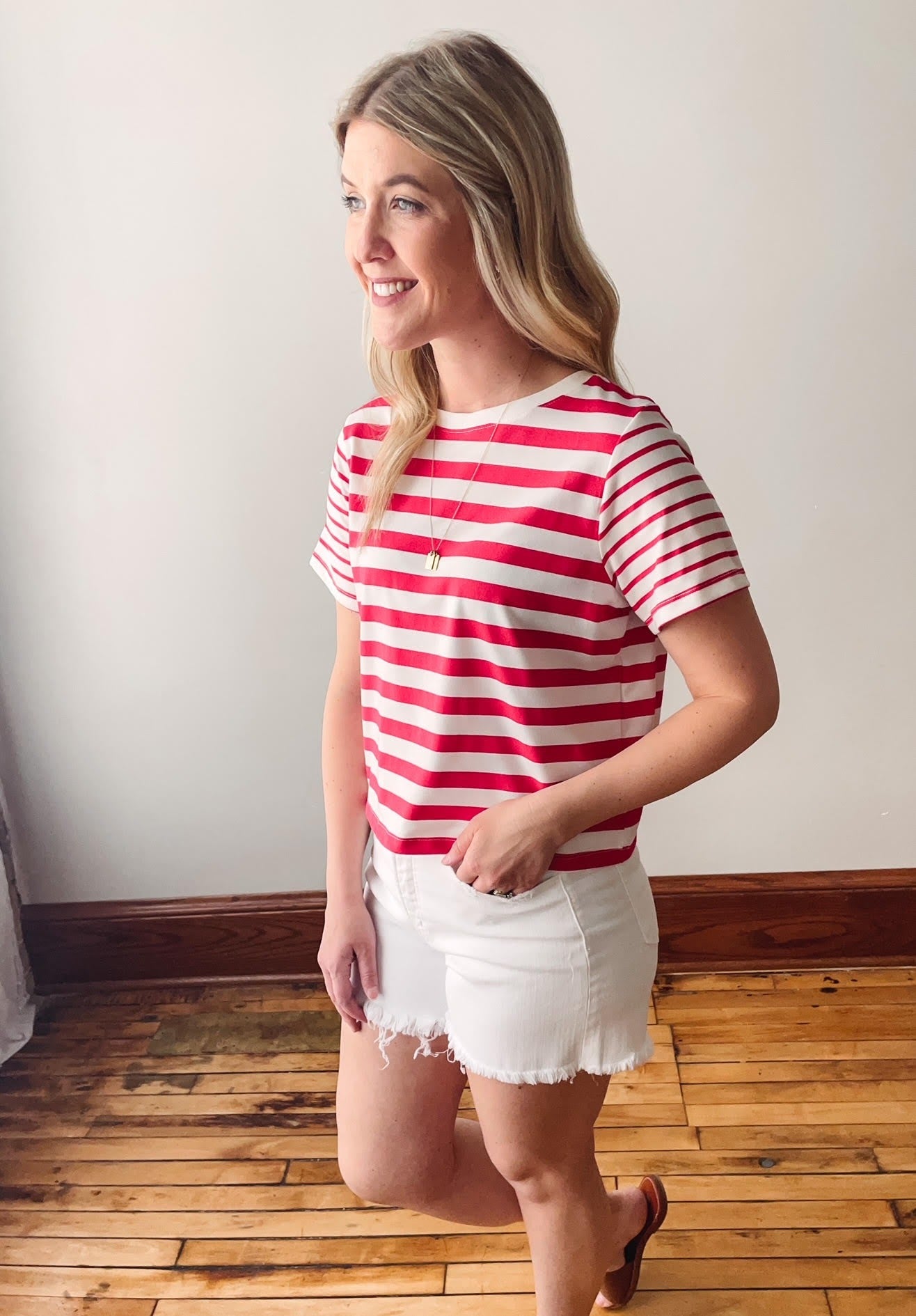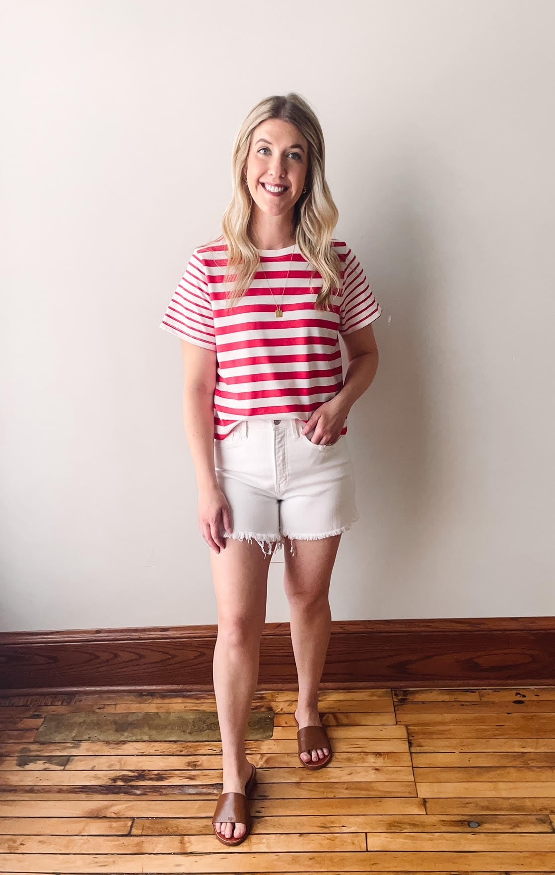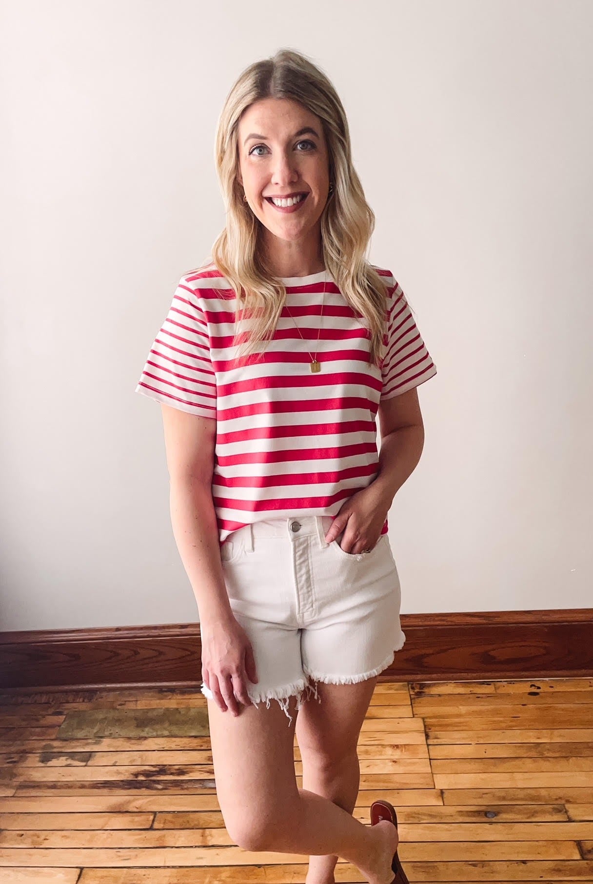 STRIPED SLEEVE CONTRAST KNIT TOP