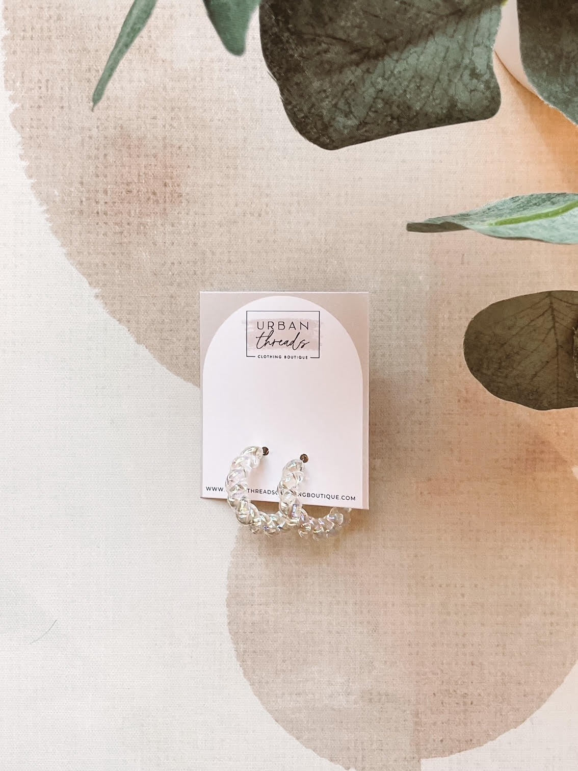 Clear Iridescent Braided Hoop Earrings