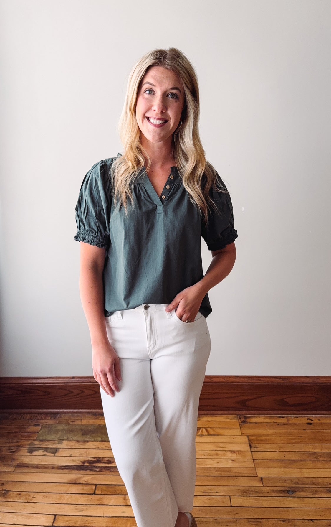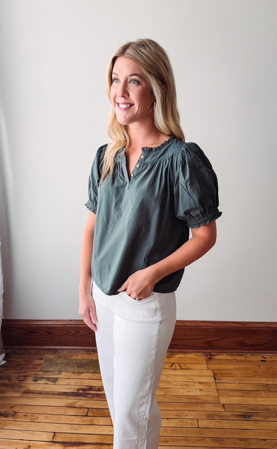 Add a touch of whimsy to your wardrobe with the Emily Forest Puff Sleeve Blouse. Its charming puff sleeves and soft fabric create a playful silhouette that’s perfect for brightening up any day. Whether paired with jeans or a skirt, this blouse brings a fun, flirty vibe to your look with effortless style.
