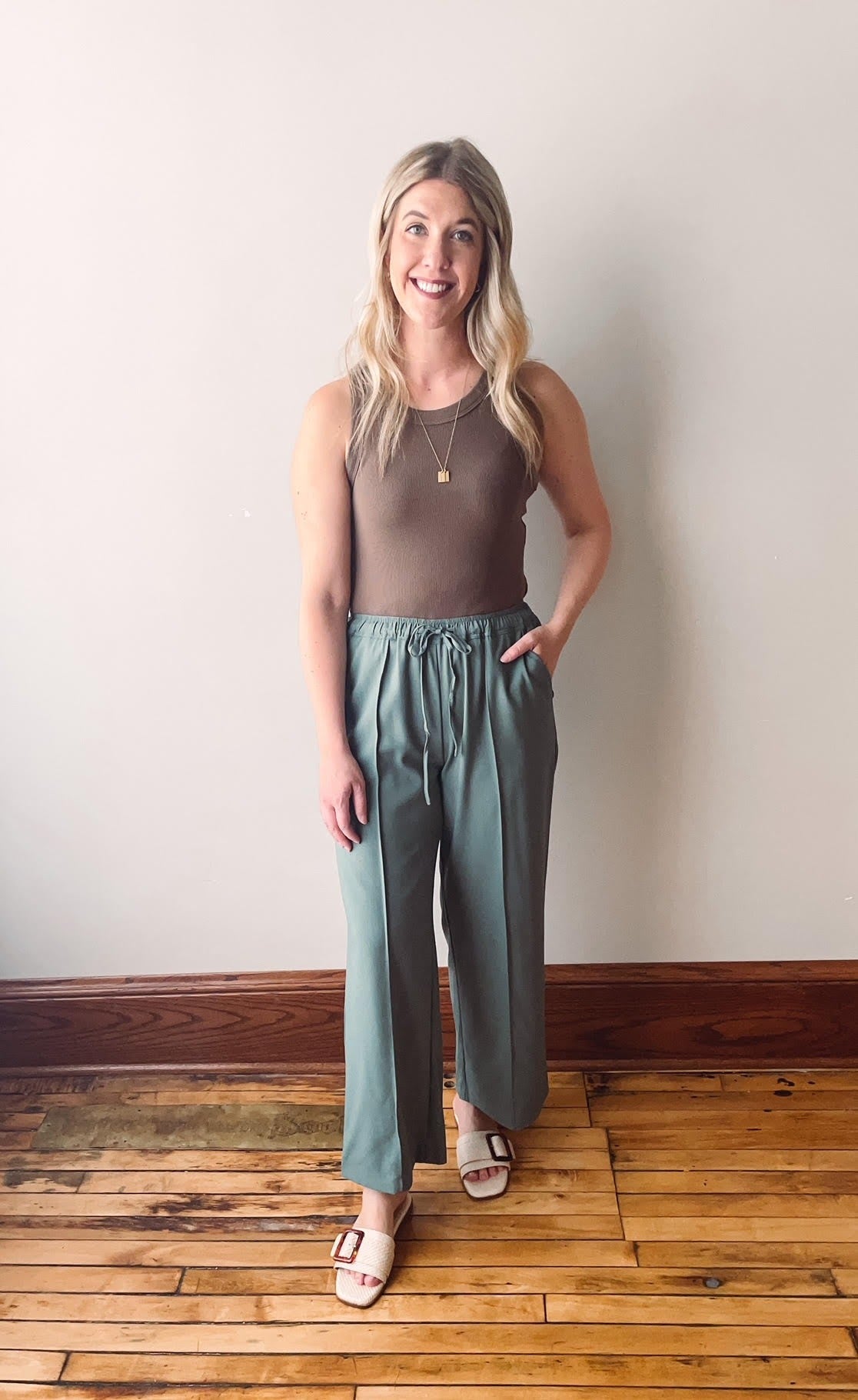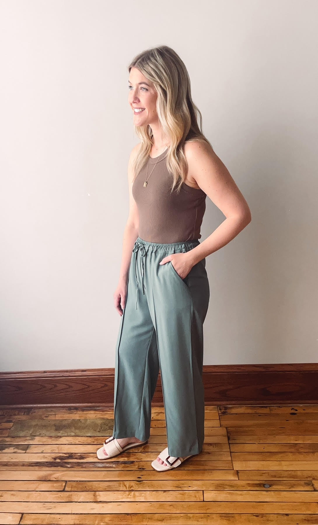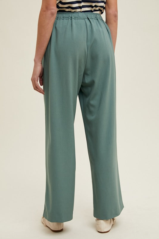Green Drawstring Wide Leg Pants