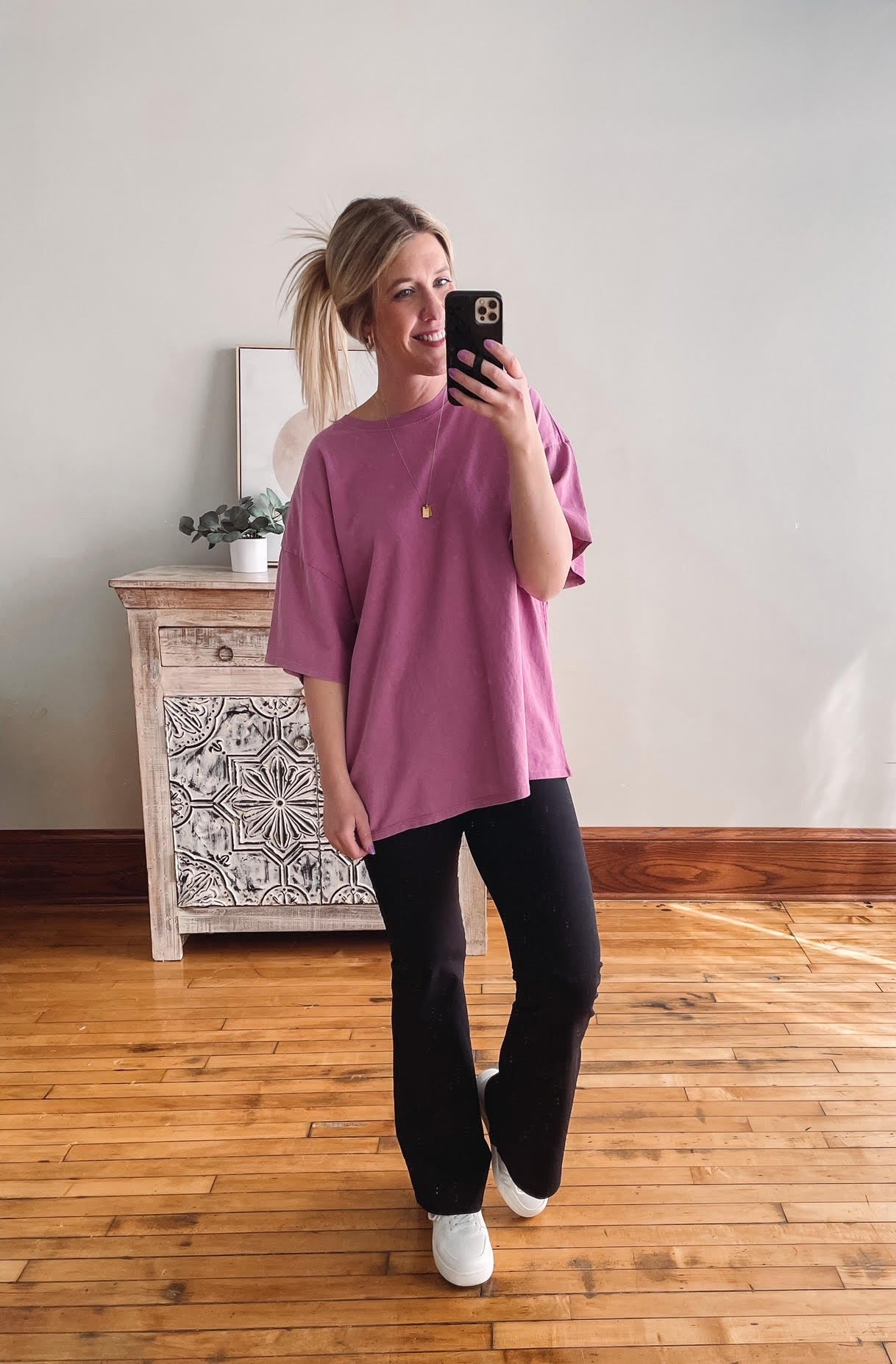 Chill In This Cool And Laid Back, Oversized T-Shirt That Shapes A Crew Neckline, Drop Shoulders, And Short Sleeves Over A Wide Cut Bodice That Extends Into An Oversized Silhouette With A Plain Hem. Pair With A Cute Bottom To Finish The Look.