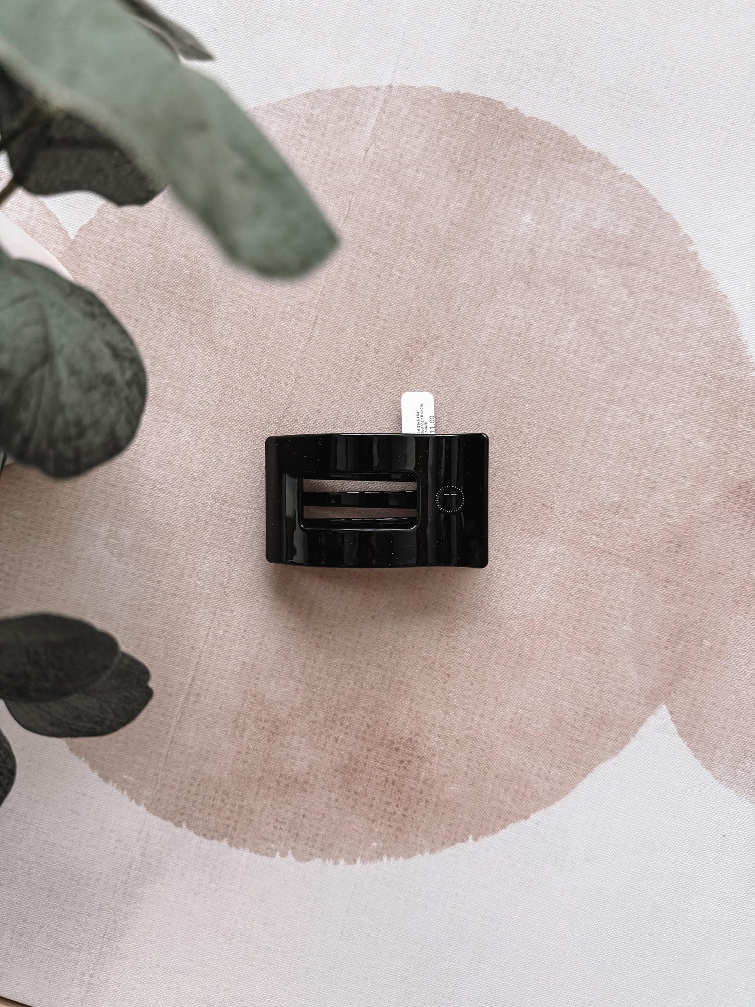 Lean back and relax - comfort just got a new shape. Introducing the TELETIES Jet Black Small Rectangle Flat Hair Clip the newest addition to our best-selling Flat Clip Collection. Joining the original Round and Square styles, this elevated rectangular design offers the same flat-back comfort and stronghold TELETIES is known for - now with a sleek, modern style.