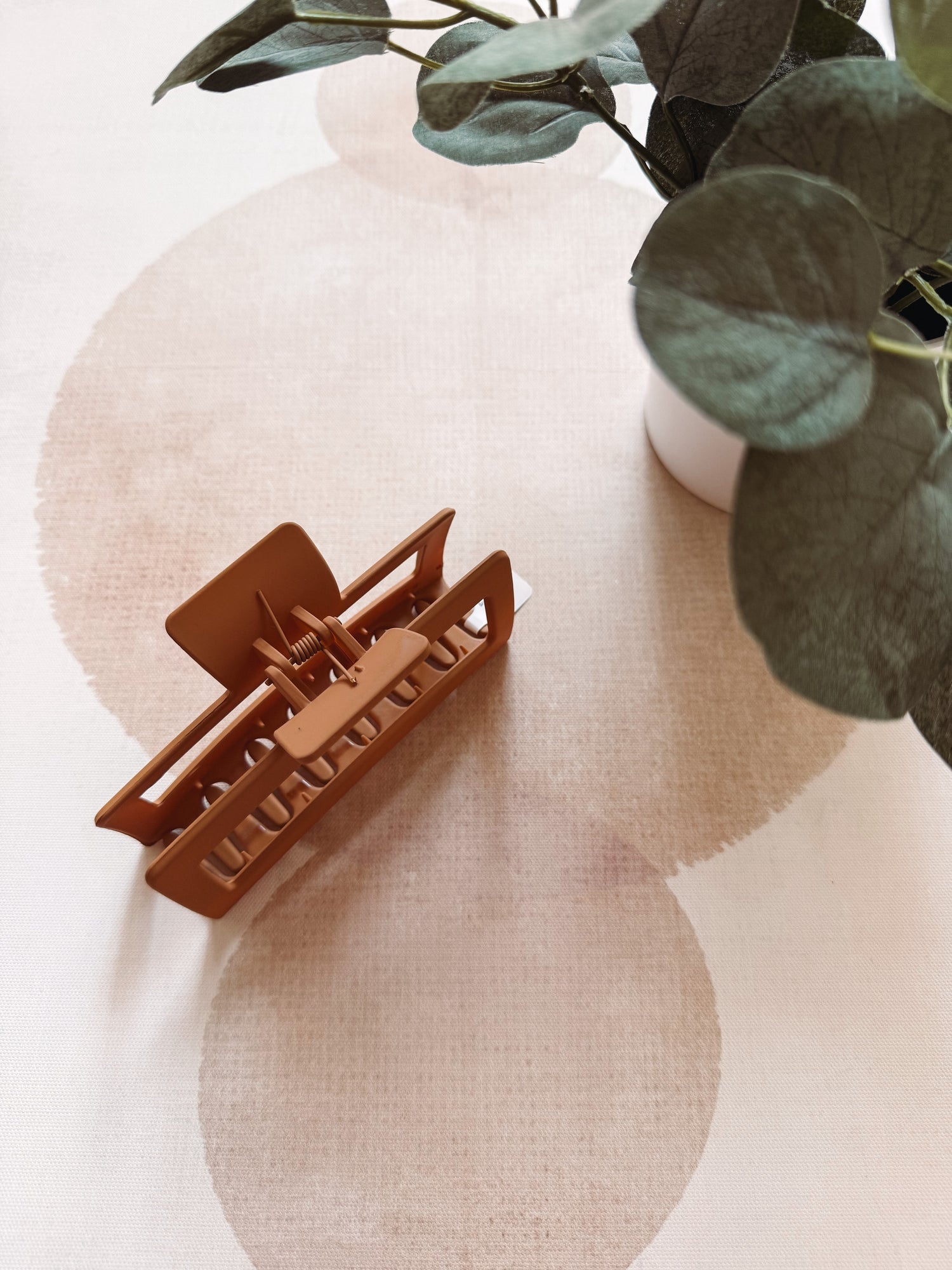 A matte Hair Claw with nonslip extra large hair claws that can hold hair tight to so that styling will be easy.