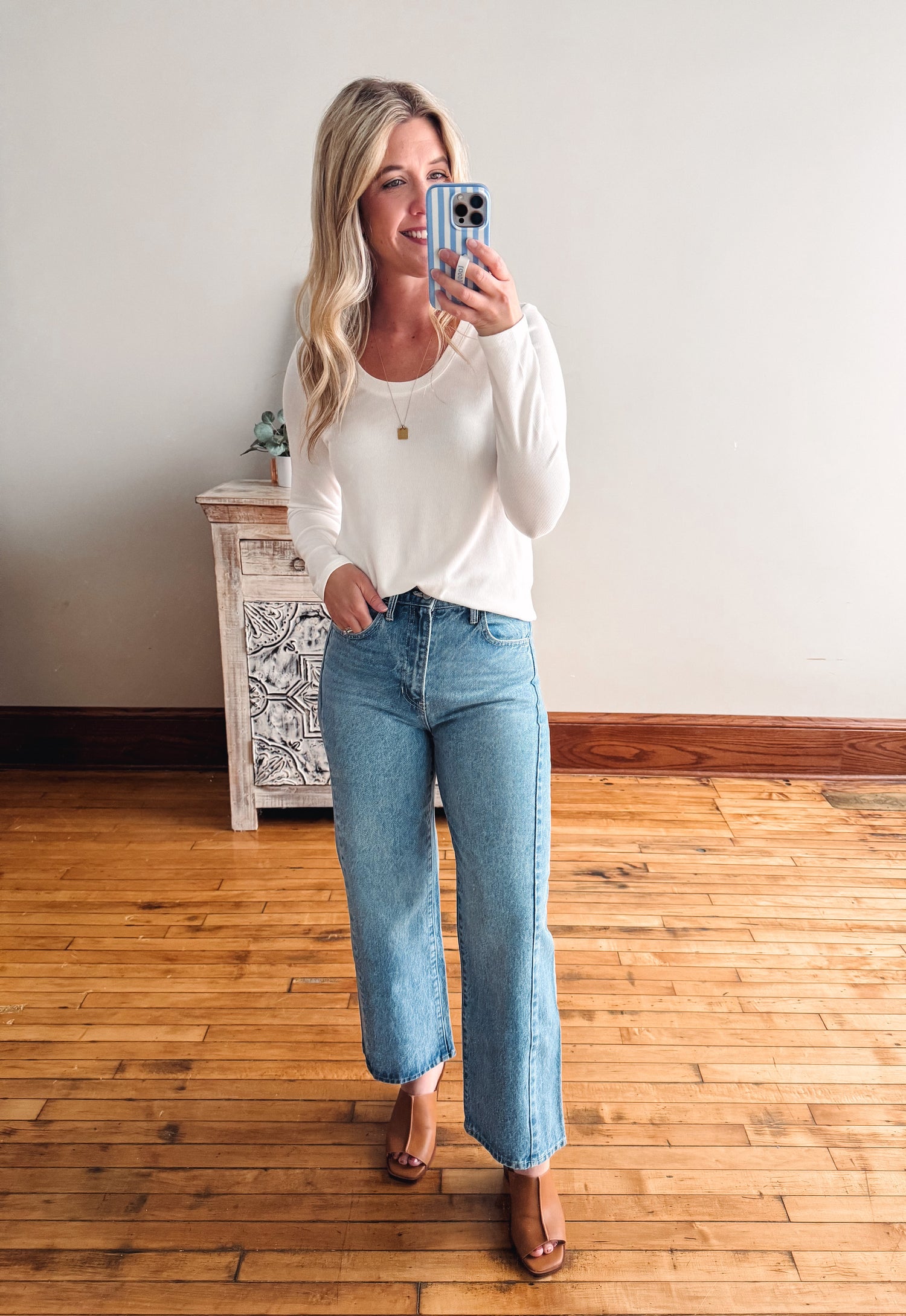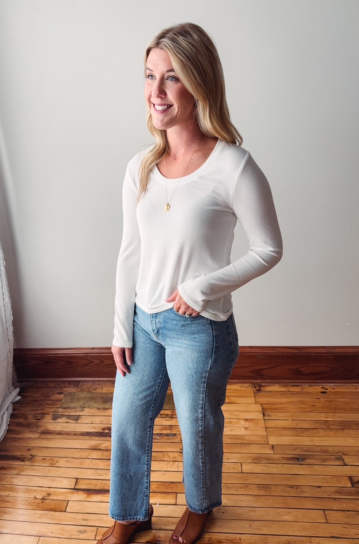 Stay cozy and chic in the Lauren White Long Sleeve, featuring a soft ribbed texture that adds a fun twist to your everyday look. Perfect for layering or wearing solo, this playful top brings comfort and style together effortlessly.
