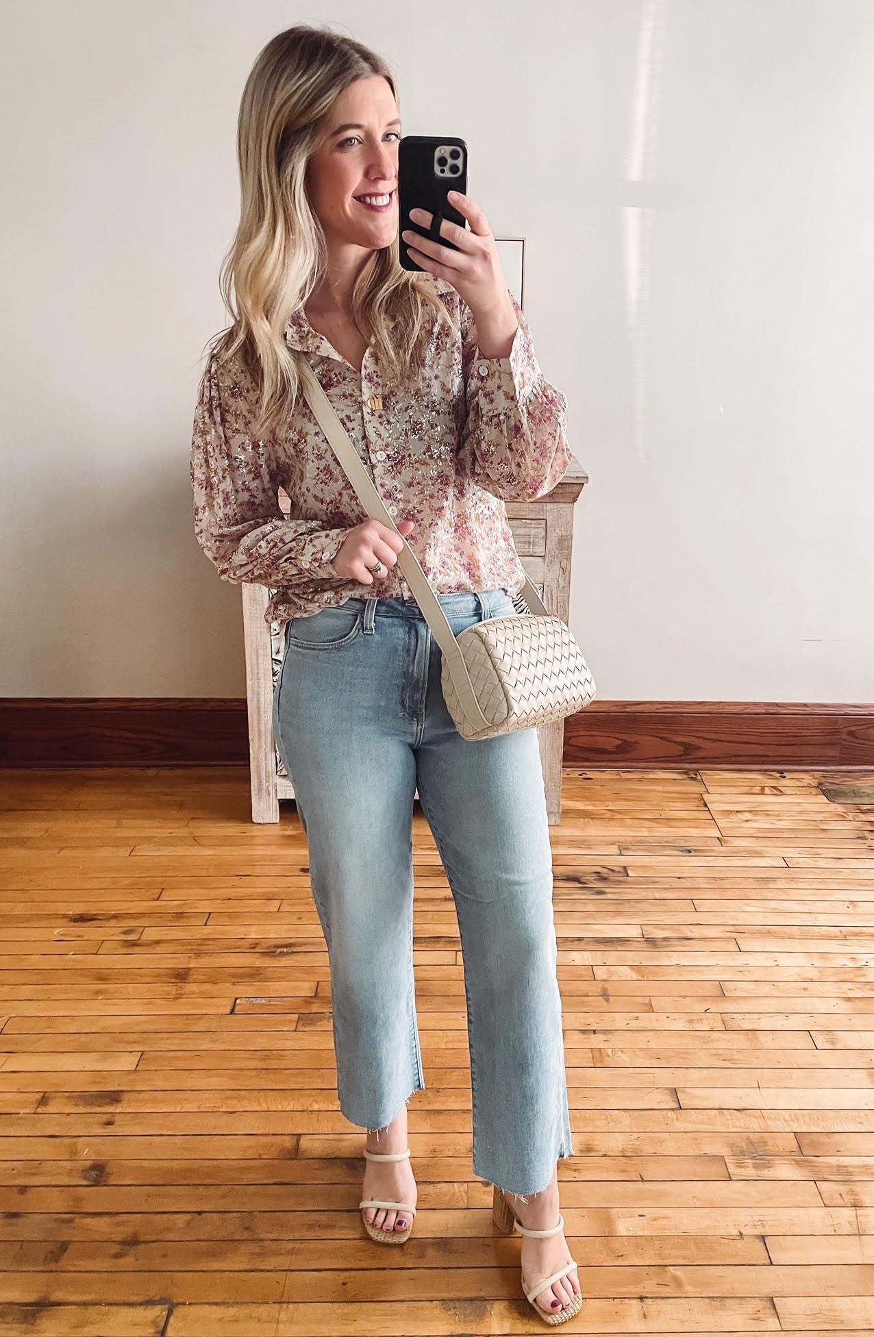 Stay on-trend with this fashionable button-up shirt. Elevate your style effortlessly with chic floral prints. Versatile design suitable for work, school, or dates. Elegant bishop sleeves add a touch of sophistication.