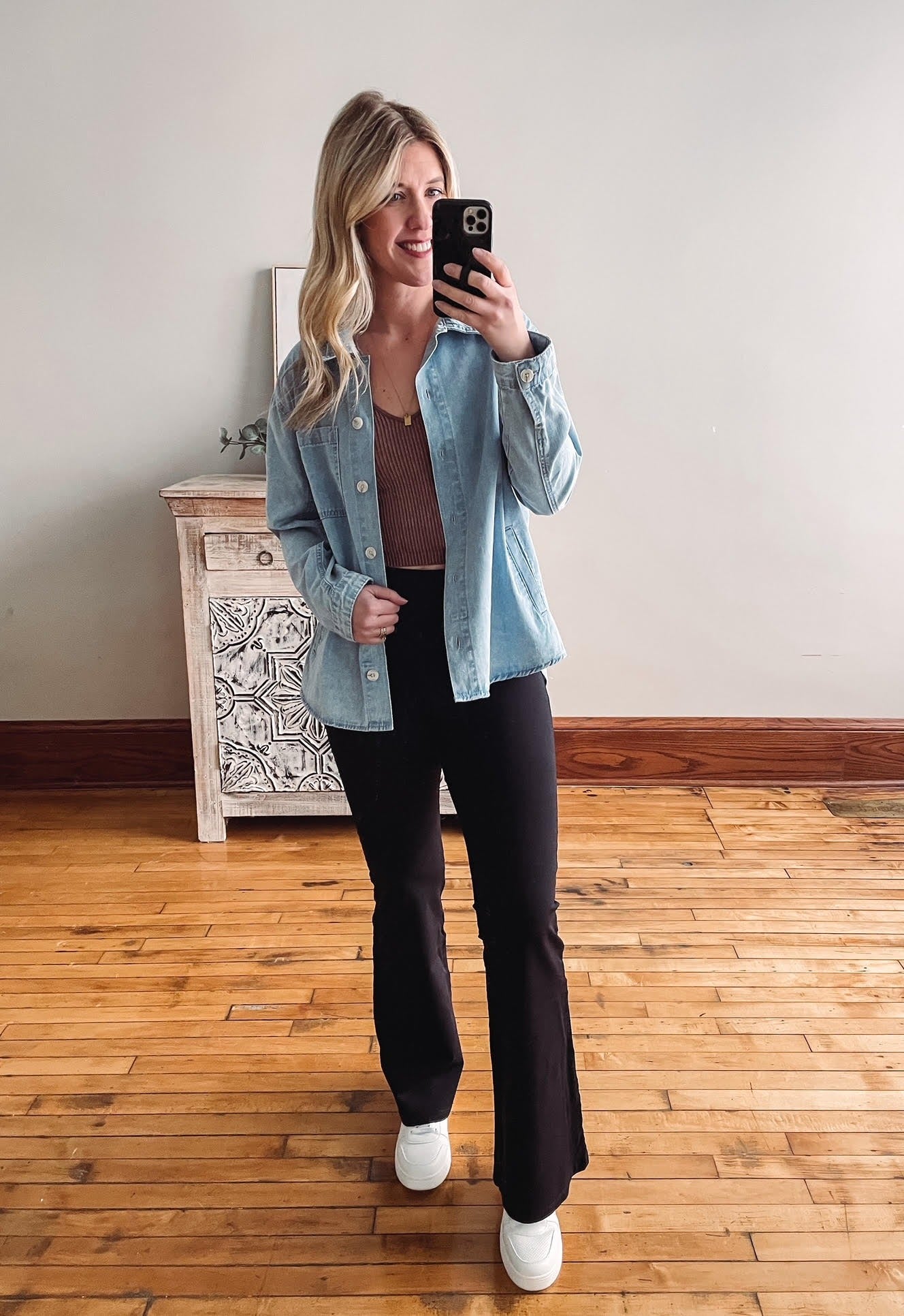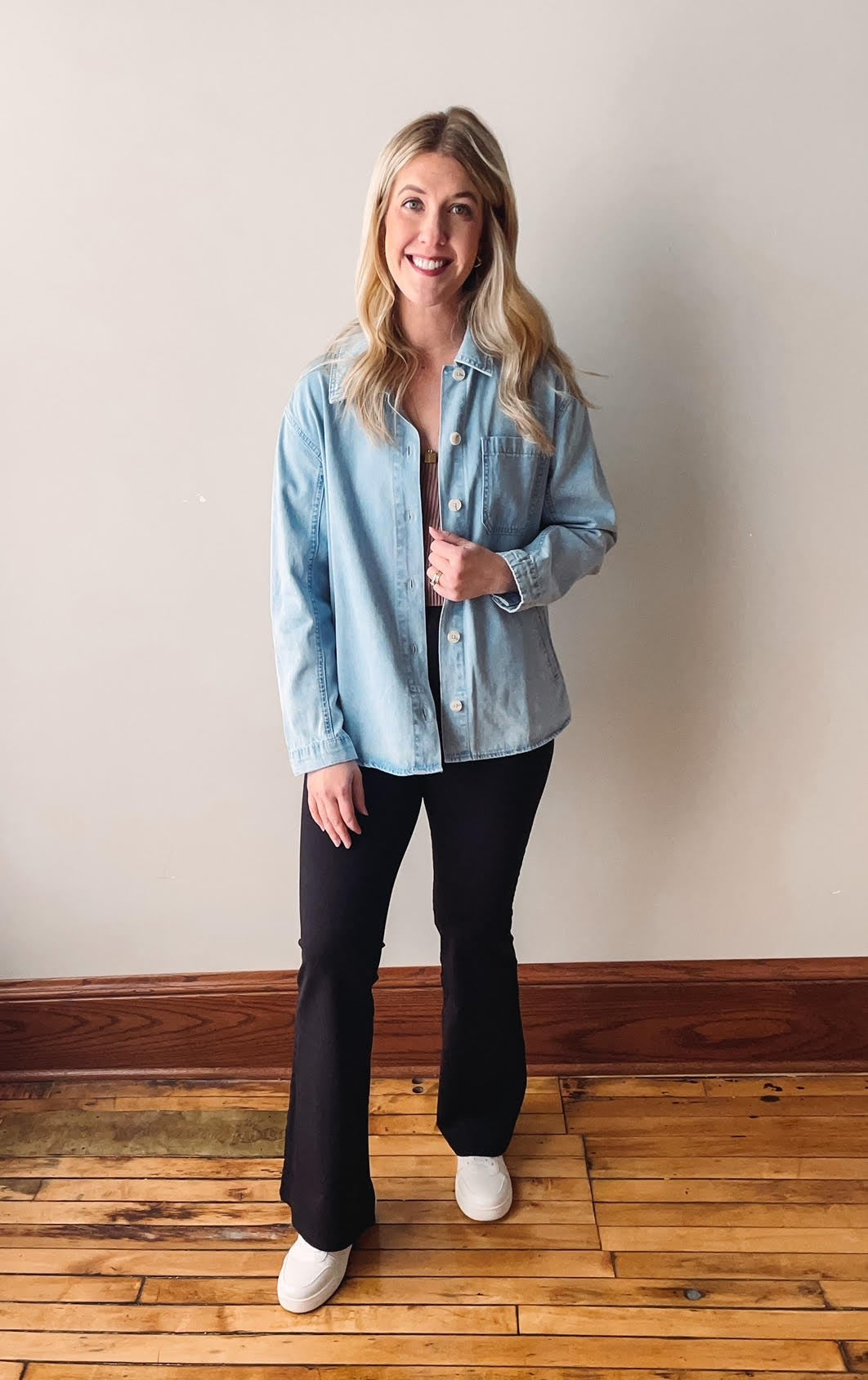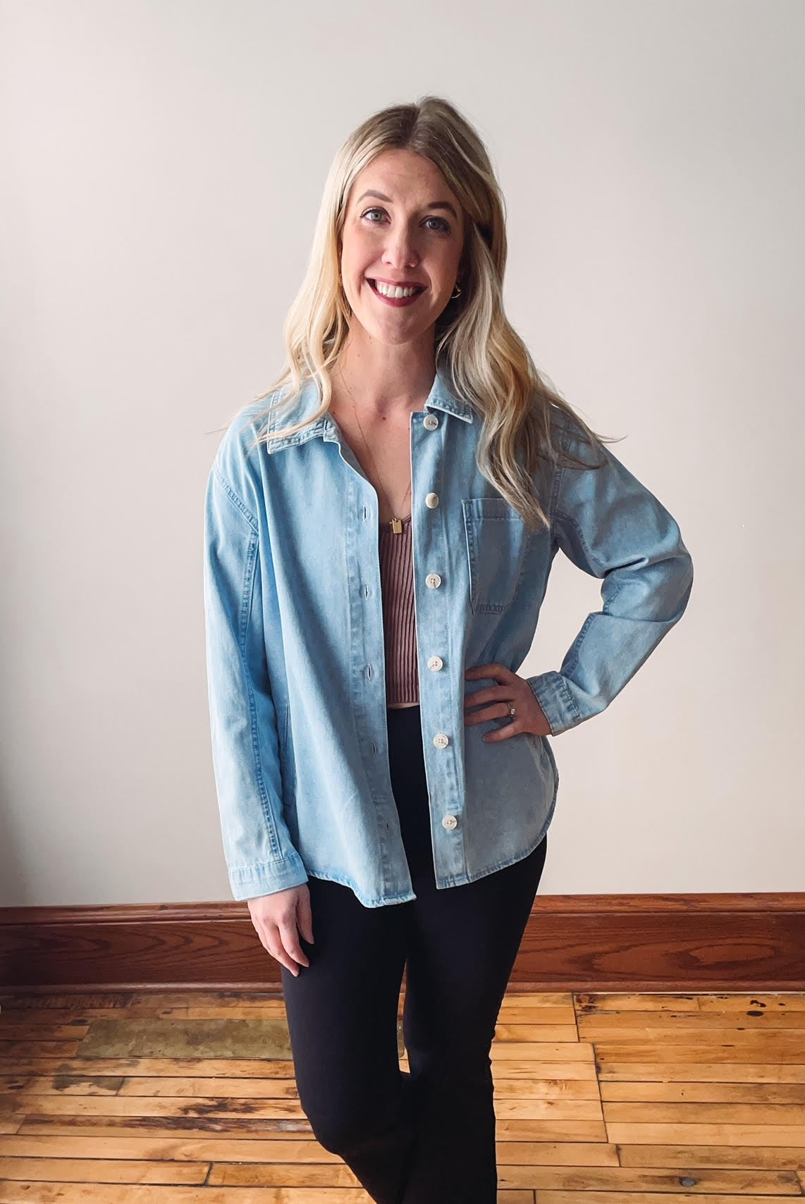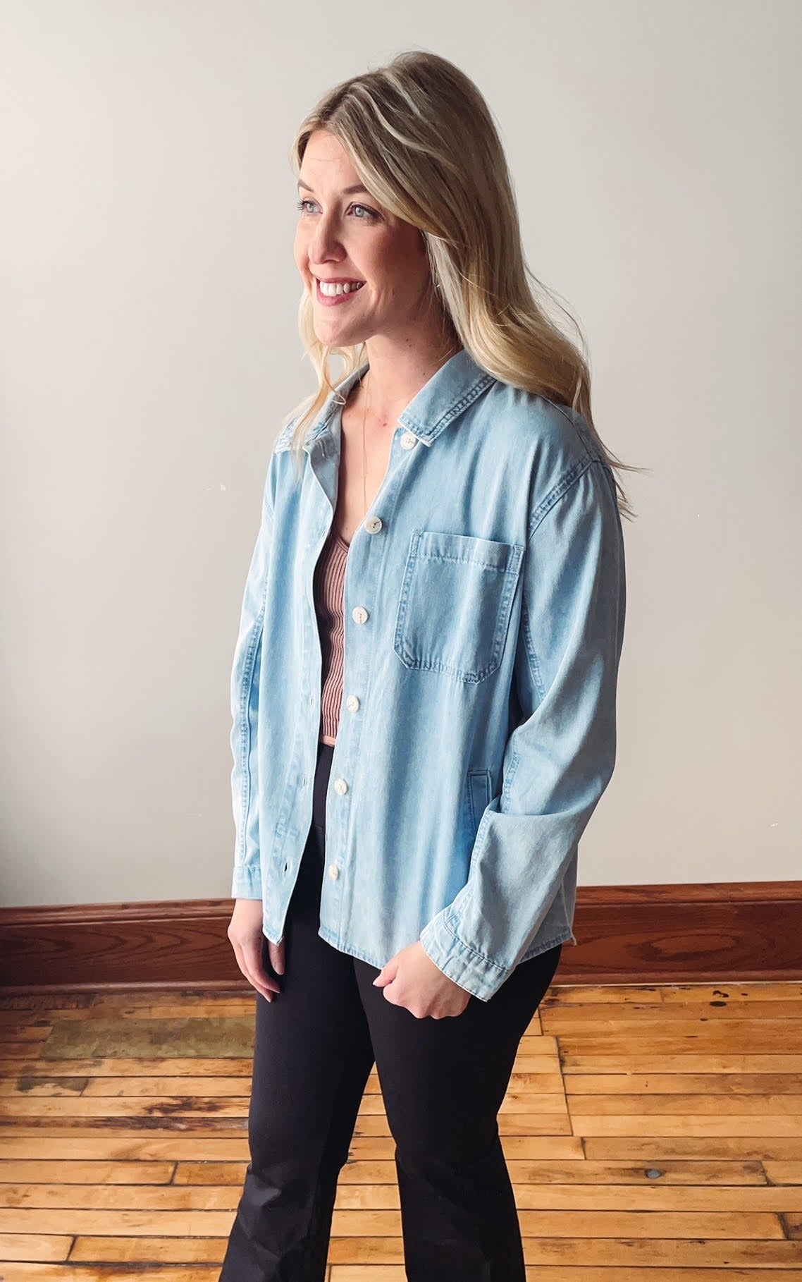 DESCRIPTIONWASHED DENIM BUTTON-UP SHACKET