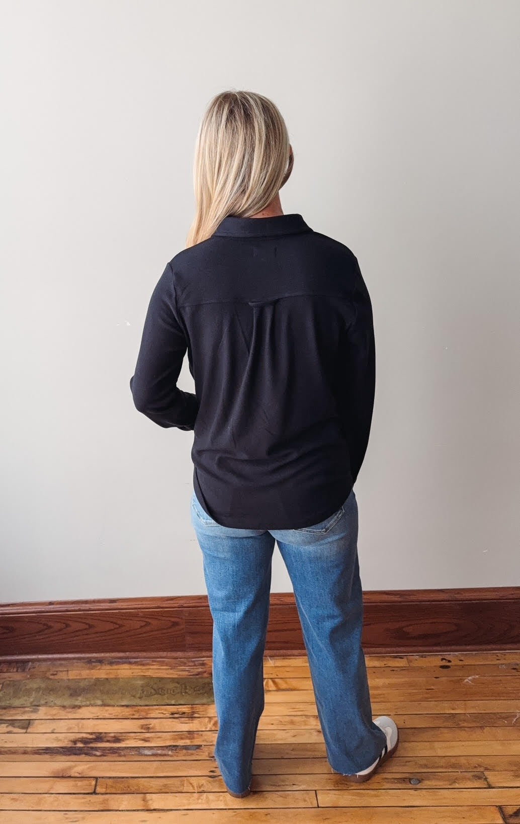- Collared neckline