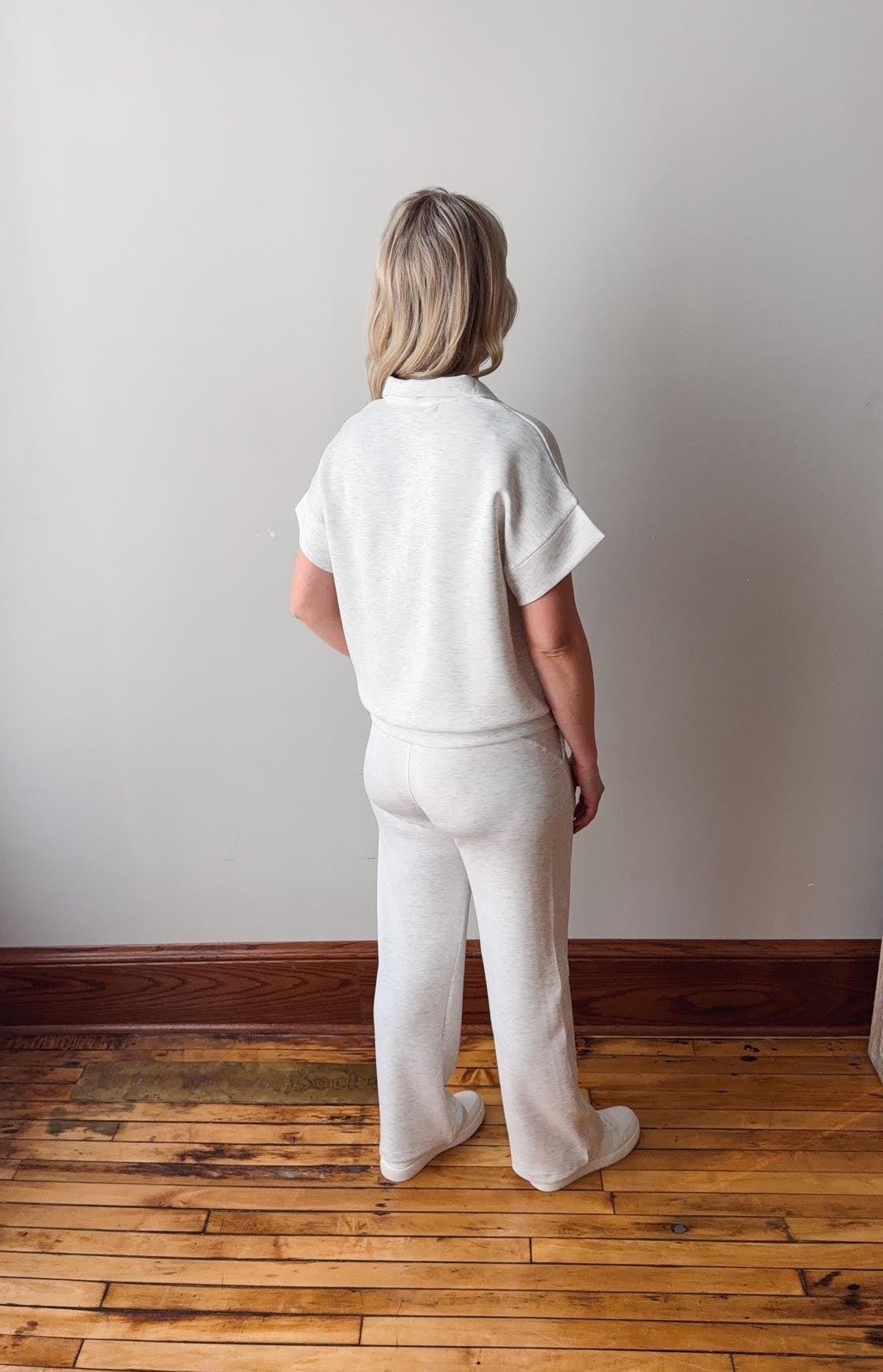 A short sleeve top made from luxurious, silky-smooth fabric, featuring a stylish quarter zip closure. Soft and refined, it adds an elevated touch to your everyday style.