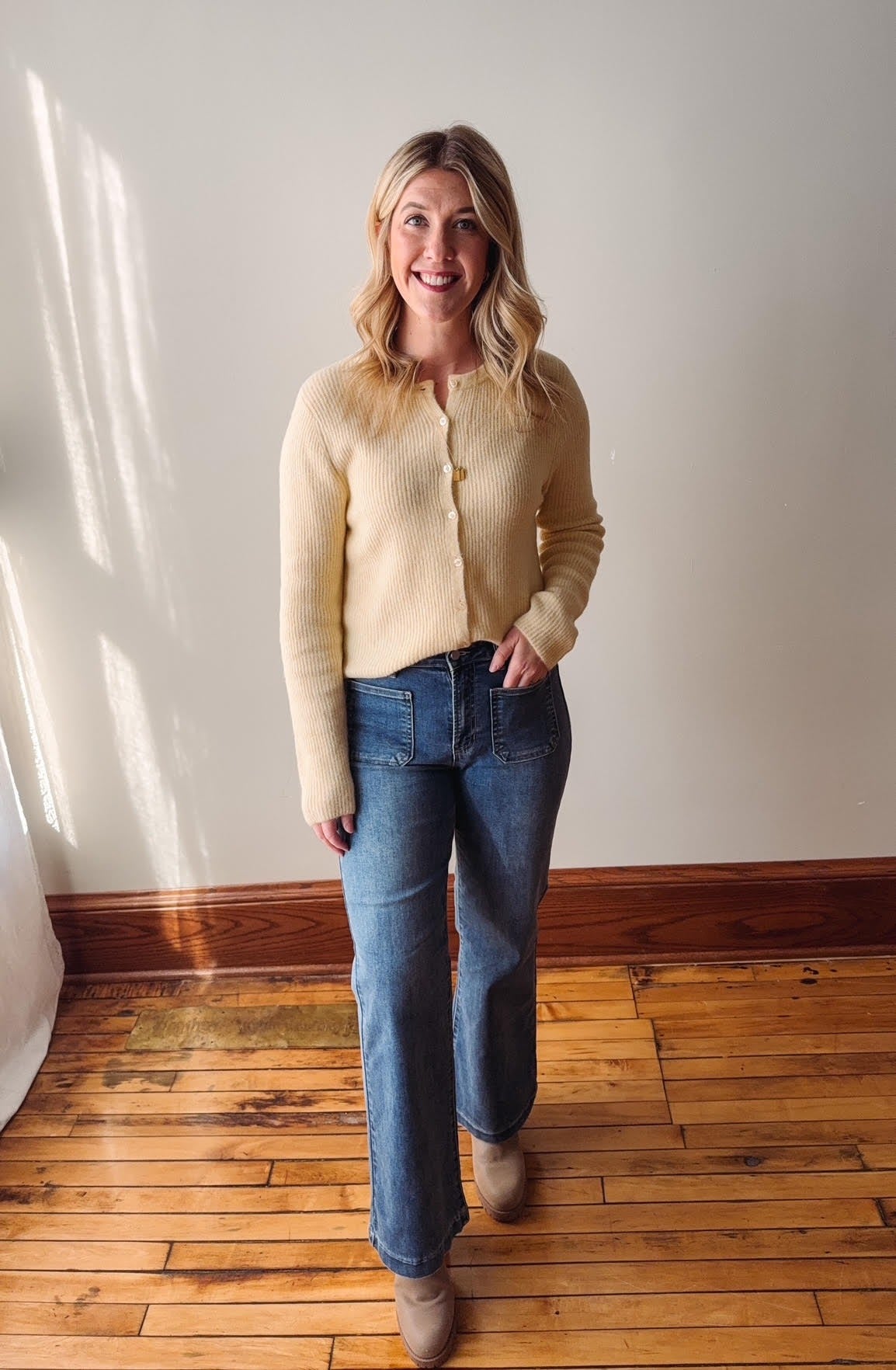 Slip into effortless style with this charming yellow cardigan that's ready for anything. Featuring a relaxed crew neckline, textured ribbing, and a satisfying button-front closure, it's the perfect layering piece for your everyday rotation. The soft, washed fabric feels like a cozy hug, while the 20½" length hits just right. Lightweight enough for year-round wear, this cardigan brings that perfect balance of comfort and cool.
