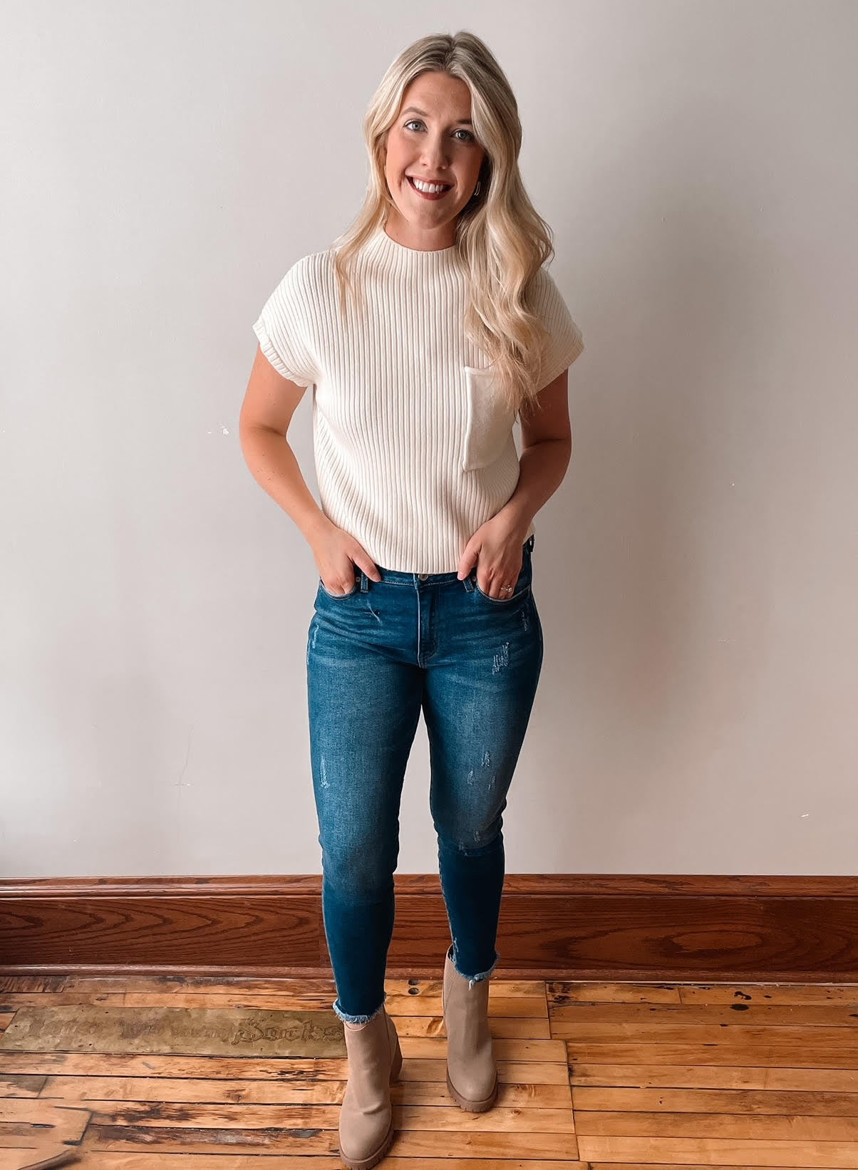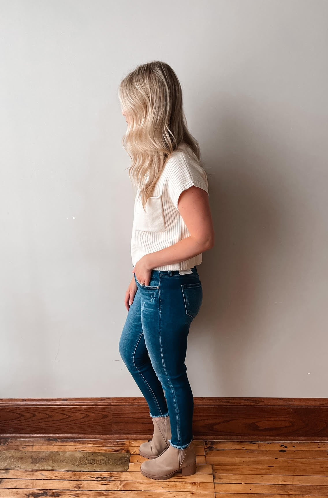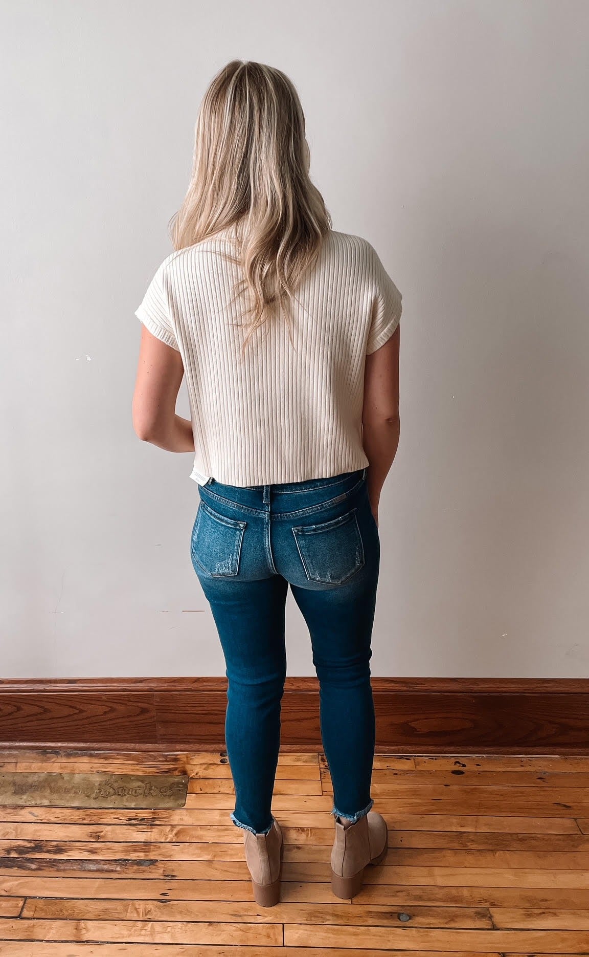 MID RISE FRAY HEM ANKLE SKINNY JEANS