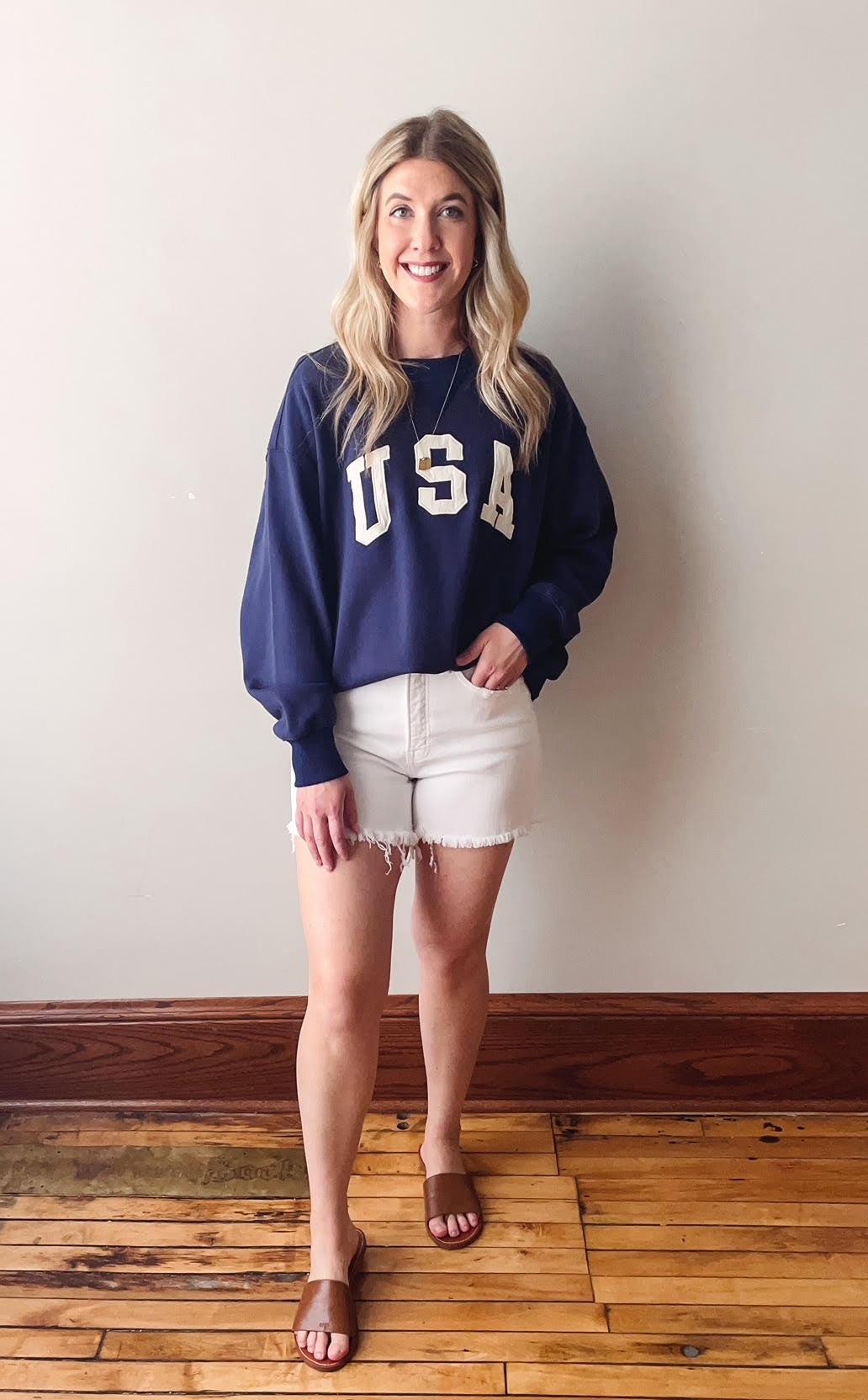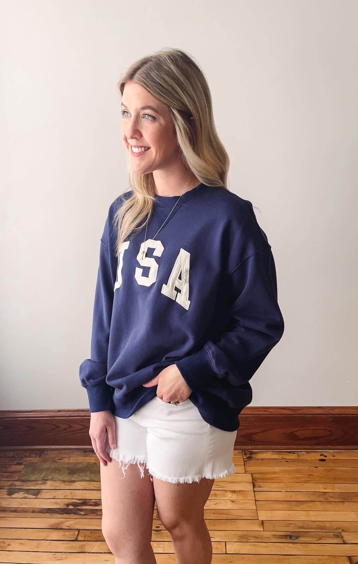 Represent your American pride with this Navy USA Embroidered Sweatshirt. Made with soft cotton material, the cream color adds a unique touch to the classic USA embroidery. Perfect for any casual occasion, this sweatshirt is a stylish yet playful way to show your love for the USA!