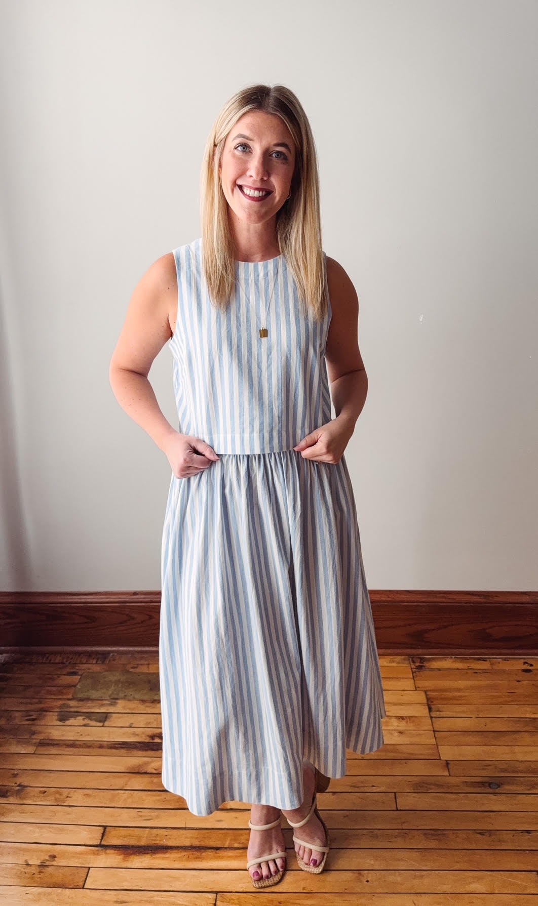 Elevate your wardrobe with the Nori Blue Striped Maxi Skirt, featuring a charming stripe design and a comfortable smocked waist that hugs just right. The perfect companion to our Nori Blue Striped Top, this flowy maxi skirt brings effortless style to any occasion. Whether you're dressing up for a night out or keeping it casual, this versatile piece delivers both comfort and flair.