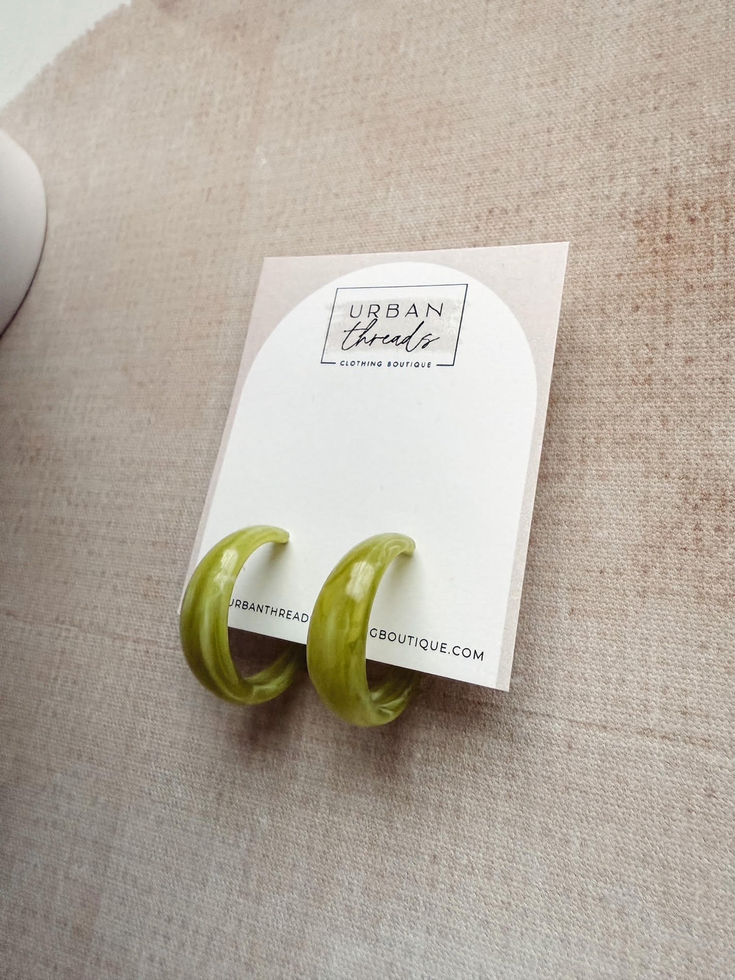 Bold yet wearable, the Olive Marble Hoop Earrings feature a rich green marble finish that brings a modern, earthy edge to your accessory collection. A standout piece that still pairs effortlessly with neutrals.