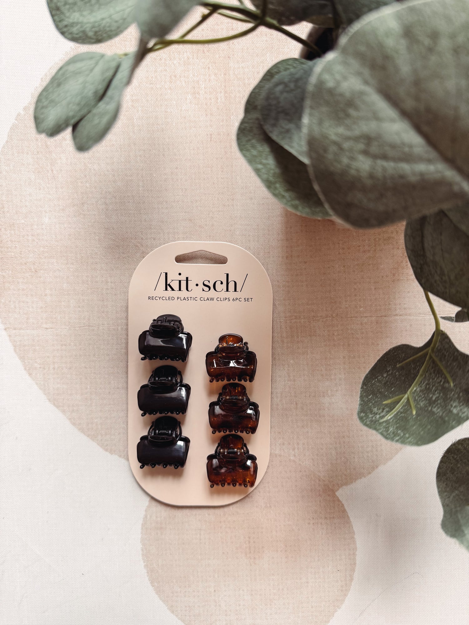 Recycled Plastic Mini Puffy Claw Clips 6pc Set- Black/Tort
