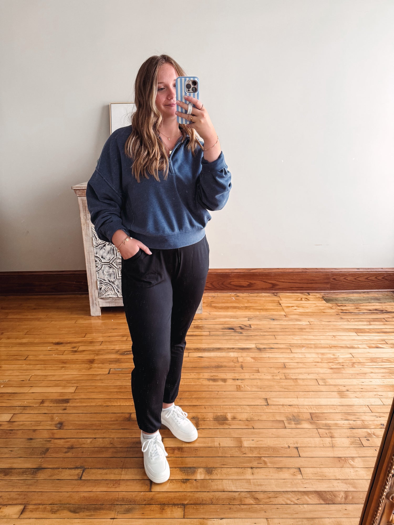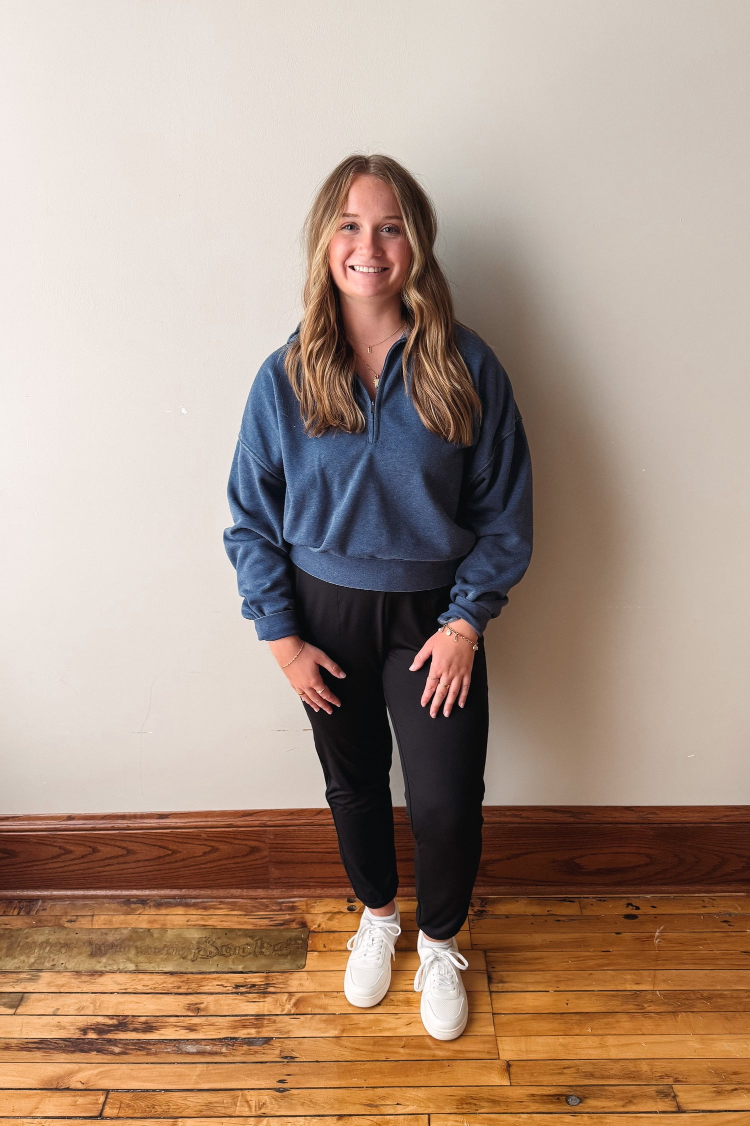 Sadie Half Zip Sweatshirt - Dusty Navy