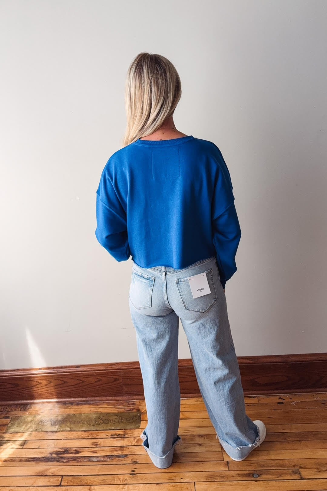 SD State Perkins Chenille Cropped Longsleeve - Washed Royal