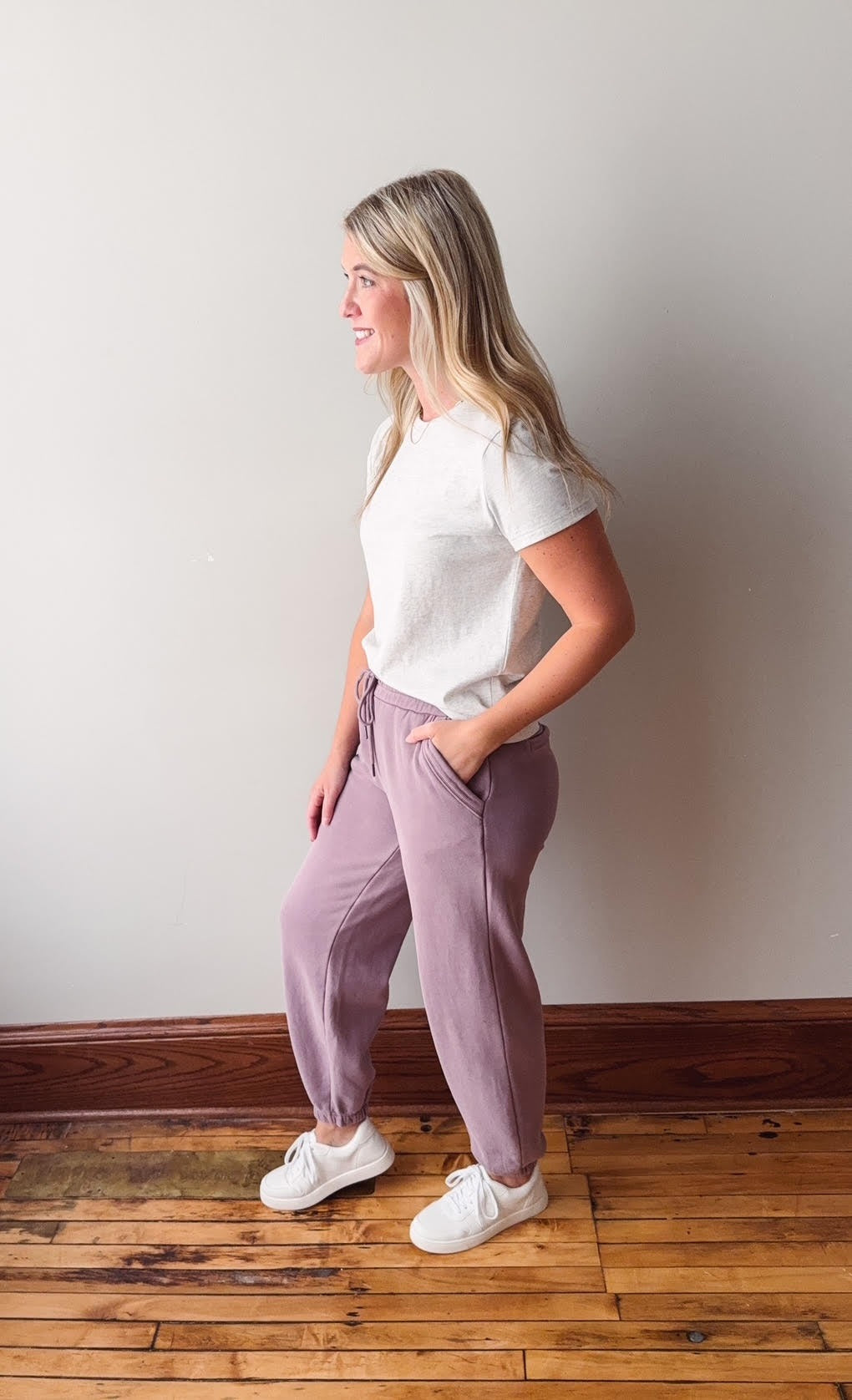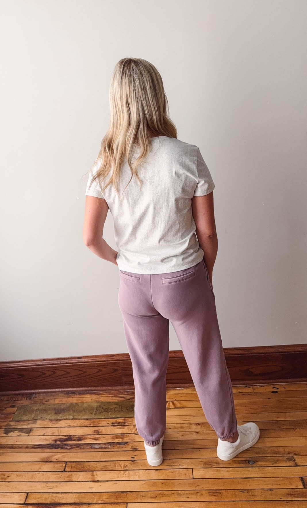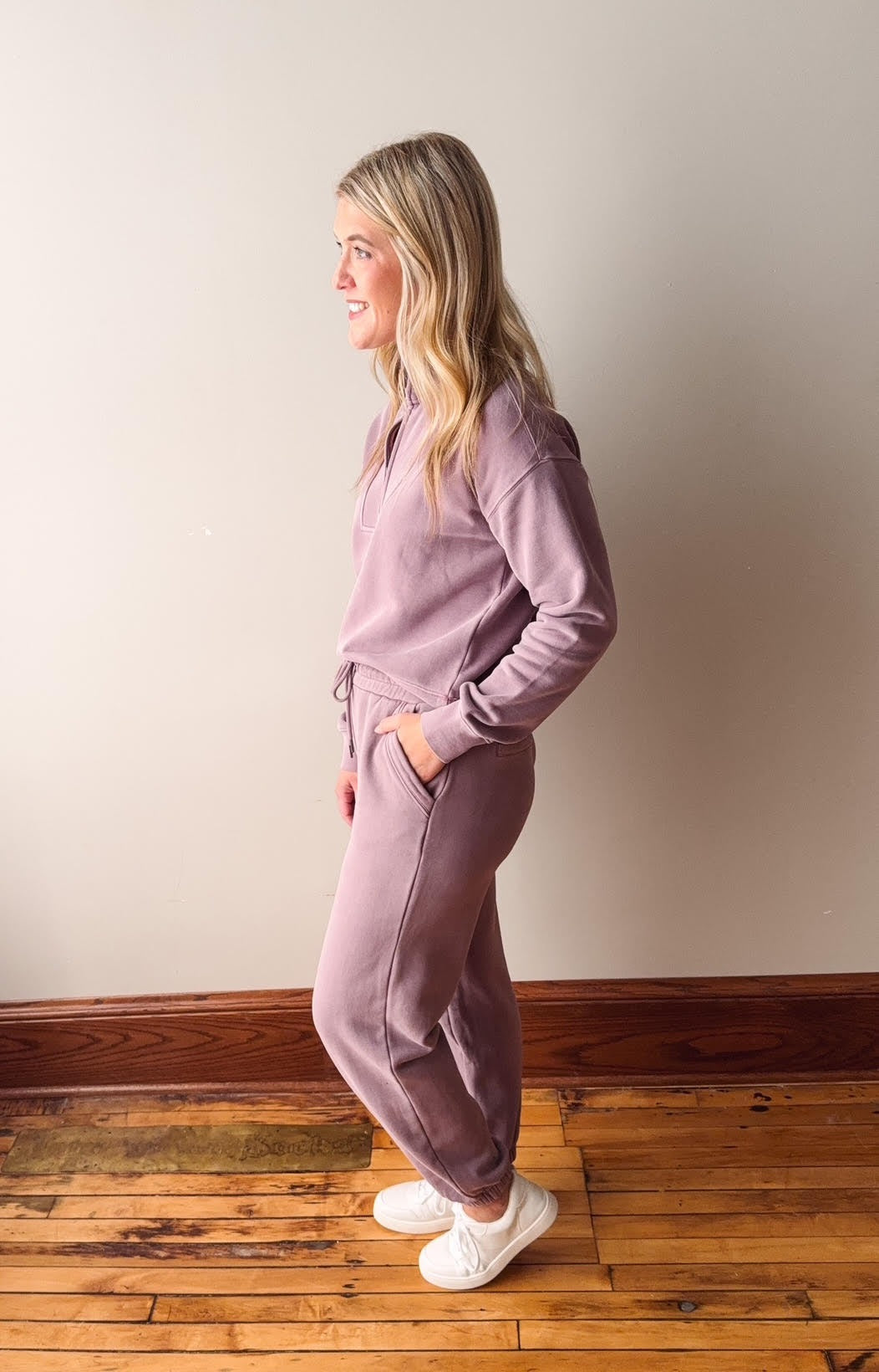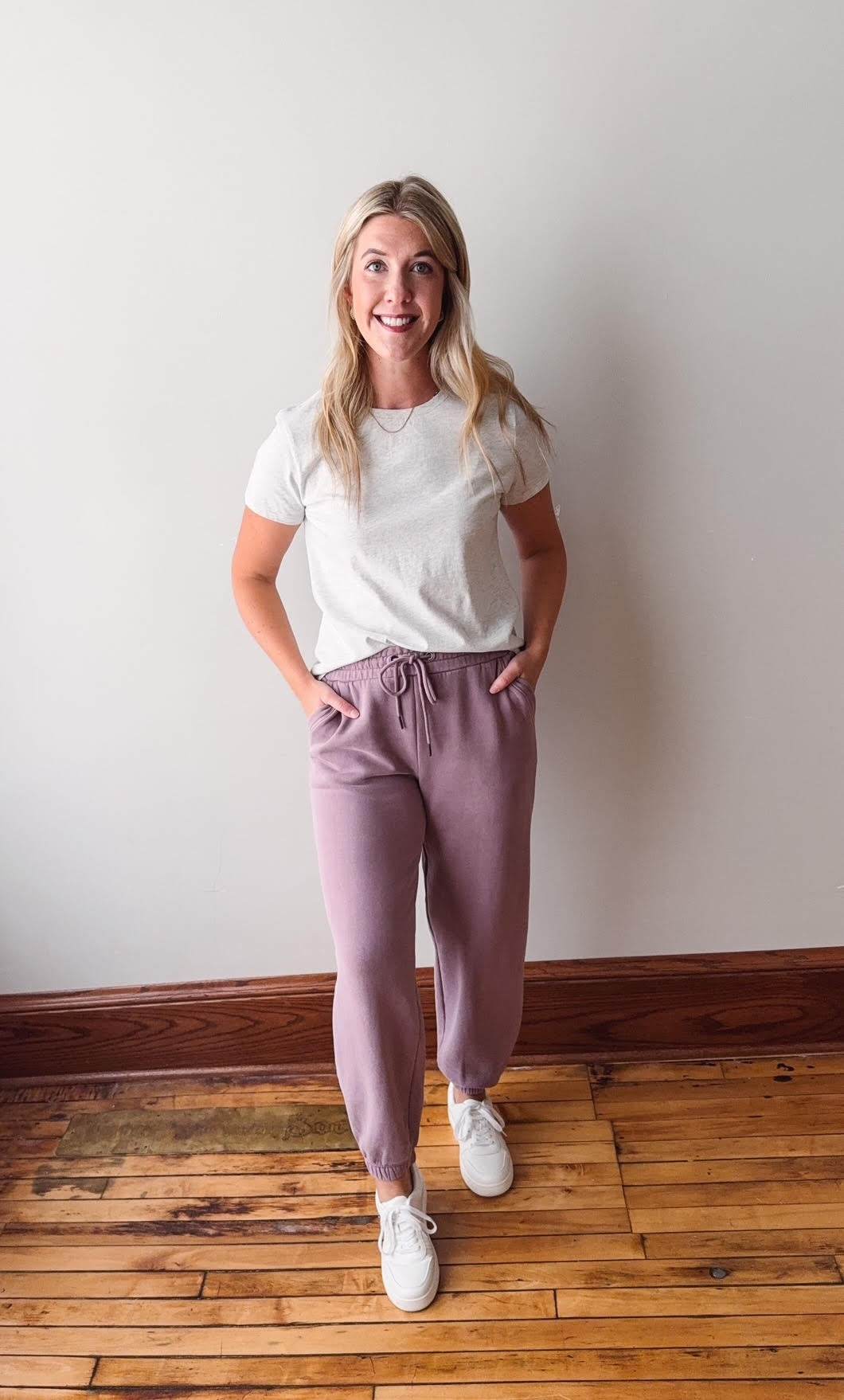 Slip into cozy bliss with our Serenity Joggers in a charming dusty lavender hue—your new favorite fleece companions for lounging or casual adventures.