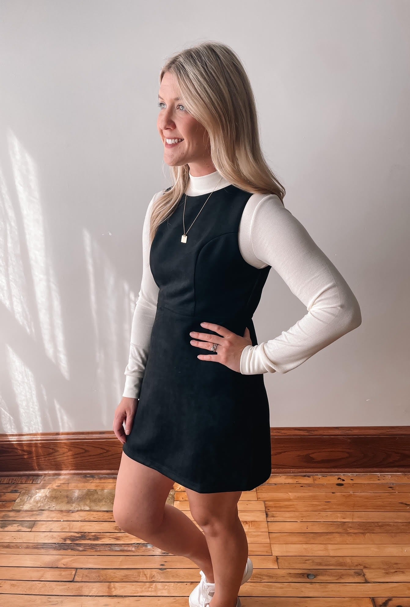 Step out in style with our Tuscany Faux Suede Mini Dress! This stunning piece features a rich faux suede fabric that offers a luxurious feel & a flattering silhouette. The dress showcases a sleek, flattering bodice, making it perfect for both day and night events. Pair it with  boots for a casual outing or dress it up with heels & statement accessories for a night out. The Tuscany Mini Dress is your go-to piece for effortless elegance!