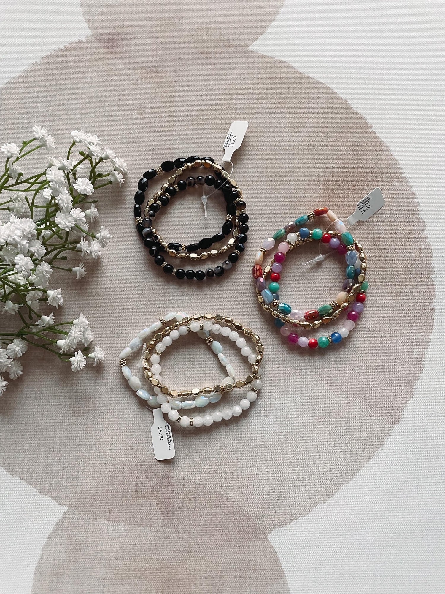 This bracelet brings a unique stone and metallic beaded set style. Experience refined sophistication with this understated yet stylish piece.