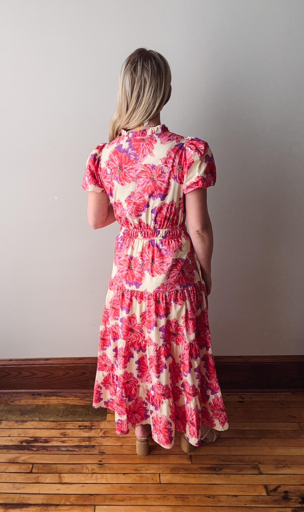 Zara Red Floral Tiered Dress